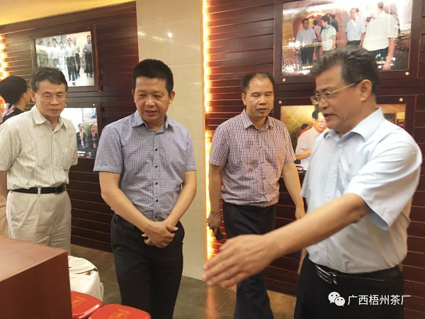8月29日,賀州市總工會黨組書記、常務副主席莫華鈞(左二),市總工會黨組成員、副主席鐘毅(左一)一行到廣西梧州茶廠對勞模創(chuàng)新工作室和工匠人才等工作情況進行調研,并為該“自治區(qū)勞模和工匠人才創(chuàng)新工作室”授牌…